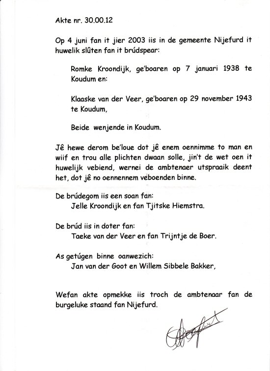 7 Ek Jan v/d Goot ut Hylpen wie der wis fan en makke understeane akte op: